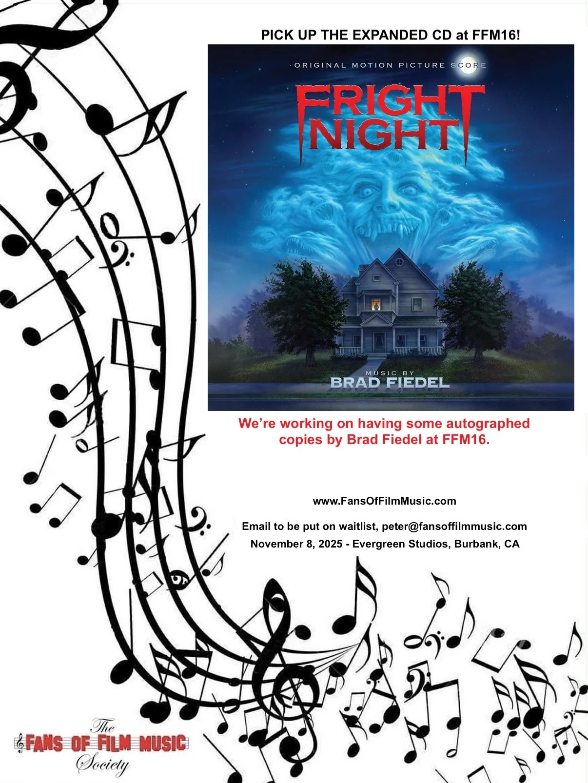 We are happy to announce the time and location of our 16th Annual Fans of Film Music Gathering! Thank you to our friends at Evergreen Studios for being our home this year! Anyone and everyone has recorded at their studio, you can find a list here, as well as many great film/TV scores like Back to the Future, Star Trek The Motion Picture, The Simpsons Movie, Dallas, Octopussy & many more! If you'd like to be added to our wait-list, email us here, peter@fansoffilmmusic.com..Guest announcements are coming soon!